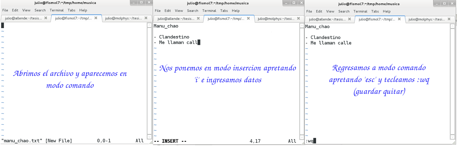 usuario@maquina$ cd /home/musica usuario@maquina$ vi manu_chao.txt