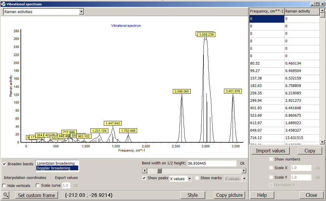 Figure 2.7.2 Raman spectrum visualized with ChemCraft