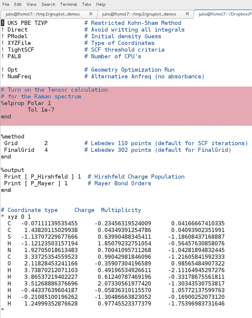 In addition to these lines we still have to perform the numerical frequencies analysis.