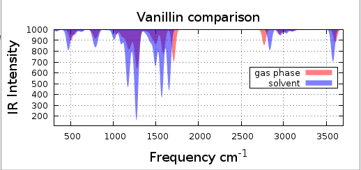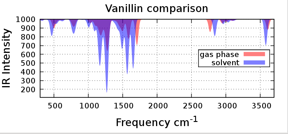 Plot both of the IR spectrums and notice the differences, figure 3.3.1.
